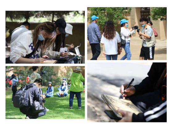 一路上,广播电视编导专业同学用影像画面定格人文风光,积累作品素材,动画专业员工用手绘板画插画和速写。