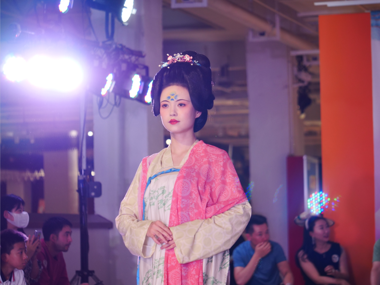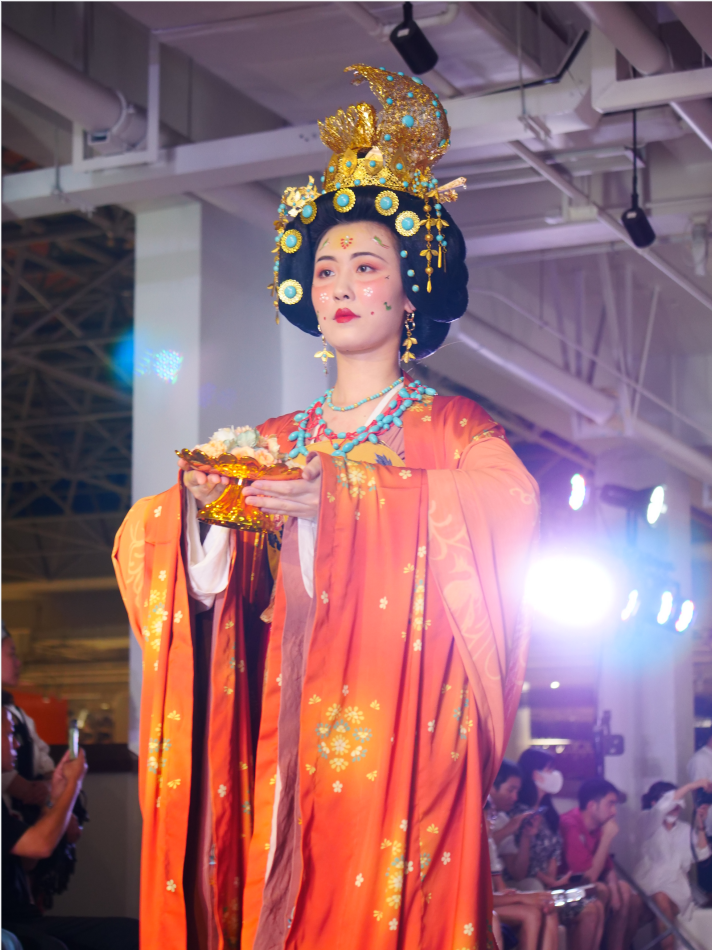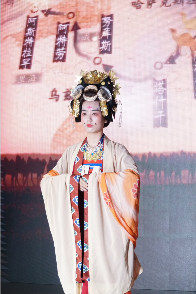 本次动态展的参展作品均选取我国历史上辉煌的秦汉与隋唐各时期经典的服饰,以现存考古发掘文物为研究基础,对其呈现的服饰进行最大限度的复原,其款式设计、面料选用、花纹装饰、颜色组合,均呈现出鲜明的阶段性、民族性和时代审美特征。这些作品从最初的设计构想到最终的成衣,每一个过程、每一个细节都融入了年轻设计师的对中国传统服饰的探索和付出,每个个体即富有想象力又饱含创造力,一针一线、一笔一划中都蕴含着汉唐气象,展示了毕业生们喷薄的才情、激昂的青春、积极向上的人生态度,以及为追求梦想而不懈努力的执着。