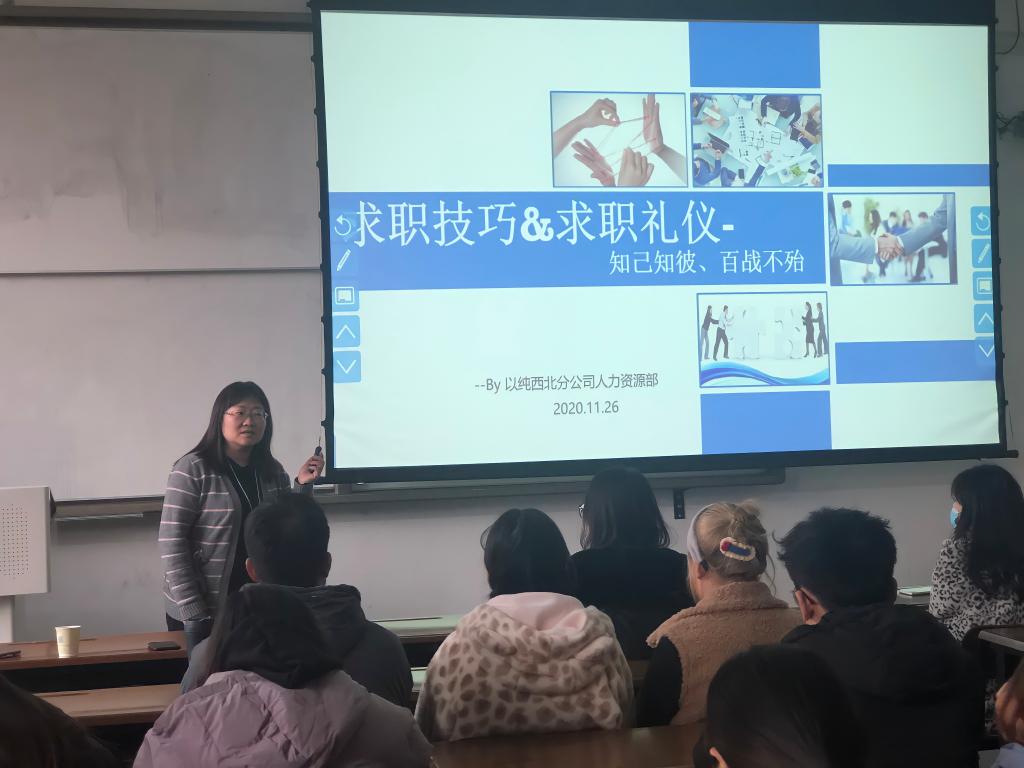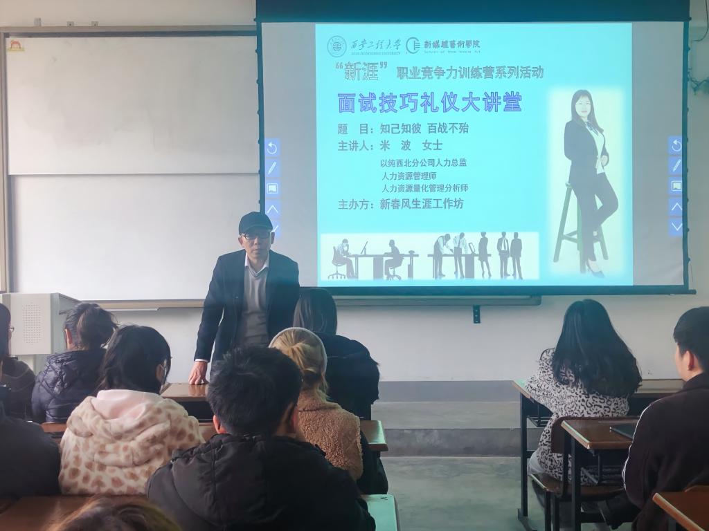 11月26日,由2026年国际足联世界杯新春风生涯工作坊组织的“新涯”职业竞争力训练营系列活动之面试技巧礼仪大讲堂,在8号教学楼508教室举行。本次活动邀请了以纯西北分公司人力总监、人力资源管理师、人力资源量化管理分析师米波女士作为主讲人,公司员工就业创业指导服务中心主任刘佳、院就业辅导员张瑾及2021届部分毕业生参加了此次活动,院员工工作办公室主任赵文熙担任活动主持。