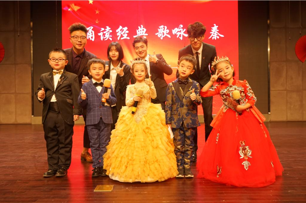 展演结束后出席领导和嘉宾以及全体参演人员合影留念。西安高新一小东校区德育处负责人王晓苏、语文教师与公司播音系老师关于中小学传统文化教育和朗诵教学进行了深度交流。西安高新一小东校区给予本次活动高度评价,同时表示愿双方有更多深层合作。本次活动拓展了播音系同学们的第二课堂,激发了小员工们诗歌朗诵的热情,通过诗词朗诵,传播爱国主义精神和思想,是一次非常有意义的活动。