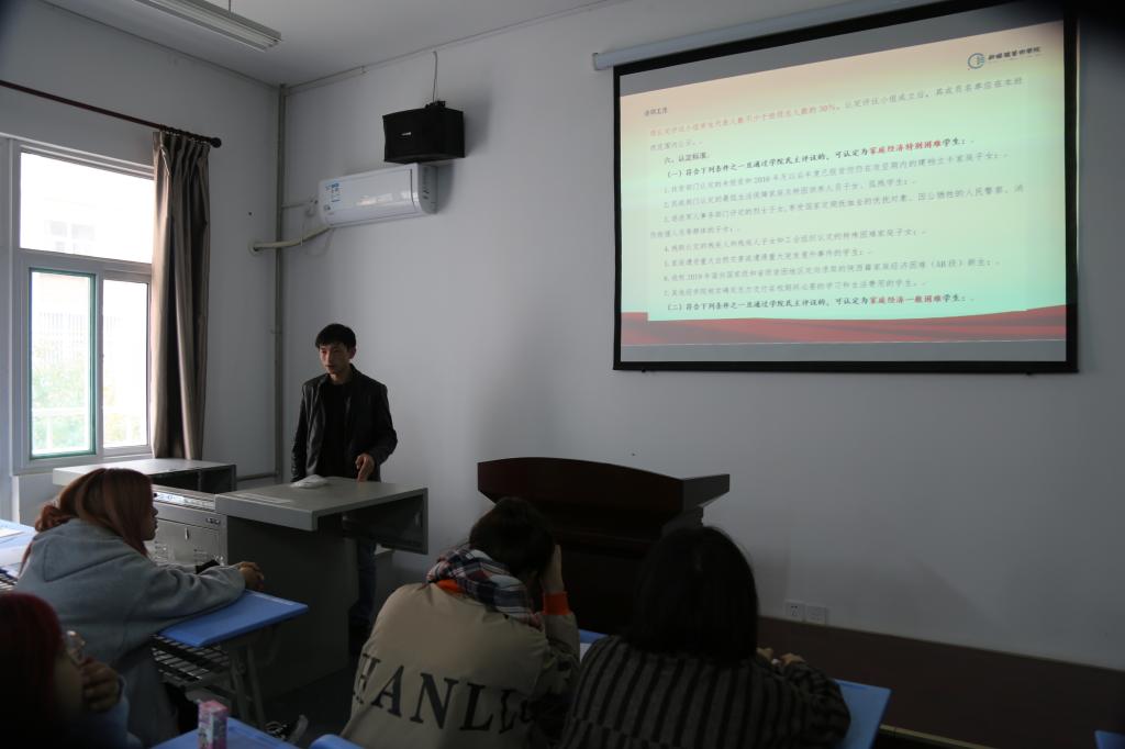 然后,刘东欢就班干部如何开展好员工资助工作进行了说明。他从公司资助政策开始讲述,论述了班干部与员工资助工作的关系,并强调班干部在员工资助工作中发挥着重要的作用,各班干部应
