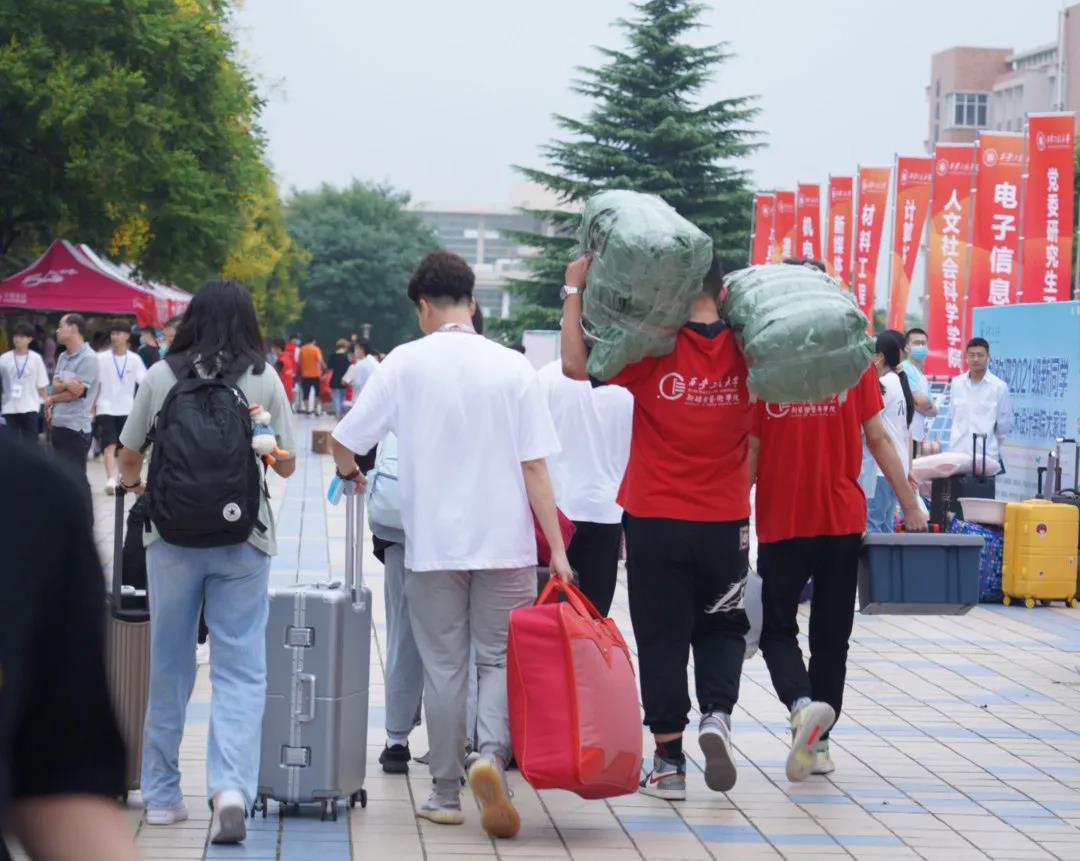 在迎新志愿者的热情帮助下,21级本科的学弟学妹及21级研究生学长学姐们有序快捷的进行了新生报道登记。登记工作完成后,就进入了每位新生最期待的宿舍环节~可大包小包的行李拿不动怎么办?不怕!有热心帅气的志愿者们在,他们用自己的行动让小鲜橙们感受到了来自工程大的温暖。