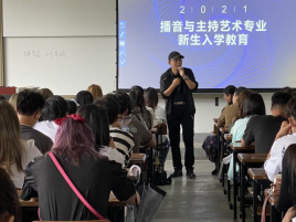 最后,播音系主任肖爱云从专业设置、团队力量、团队建设、教育实践、员工社团与专业竞赛、就业发展等方面进行了详细的专业介绍,展示近年来播音系取得的优异成果,提升了同学们对专业认知度和认同度。