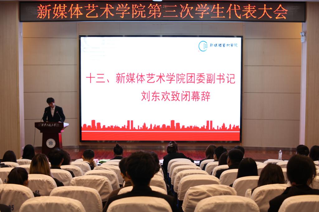 公司团委副书记刘东欢致闭幕辞,他对新一届员工干部表达期望,在新的一年能够继续全心全意为广大同学服务,以严谨的工作态度及务实的工作作风要求自己。