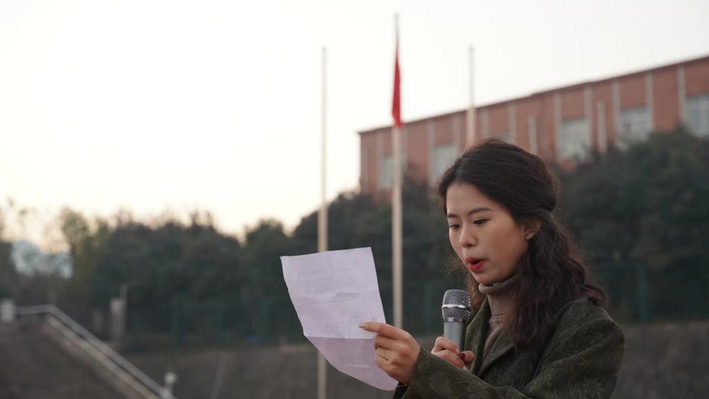 清晨微风轻拂五星红旗,灼灼目光共护国旗飘扬。仪式第二项,公司设计五班的李覃睿同学进行国旗下演讲,她号召同学们积极投身新时代中国特色社会主义伟大实践,把人生理想融入国家和人民事业之中,把为人民幸福而奋斗作为自己最大的幸福,心中怀山河,才能够担负起时代赋予青年人的重任,领悟红色革命精神,传承红色革命基因。