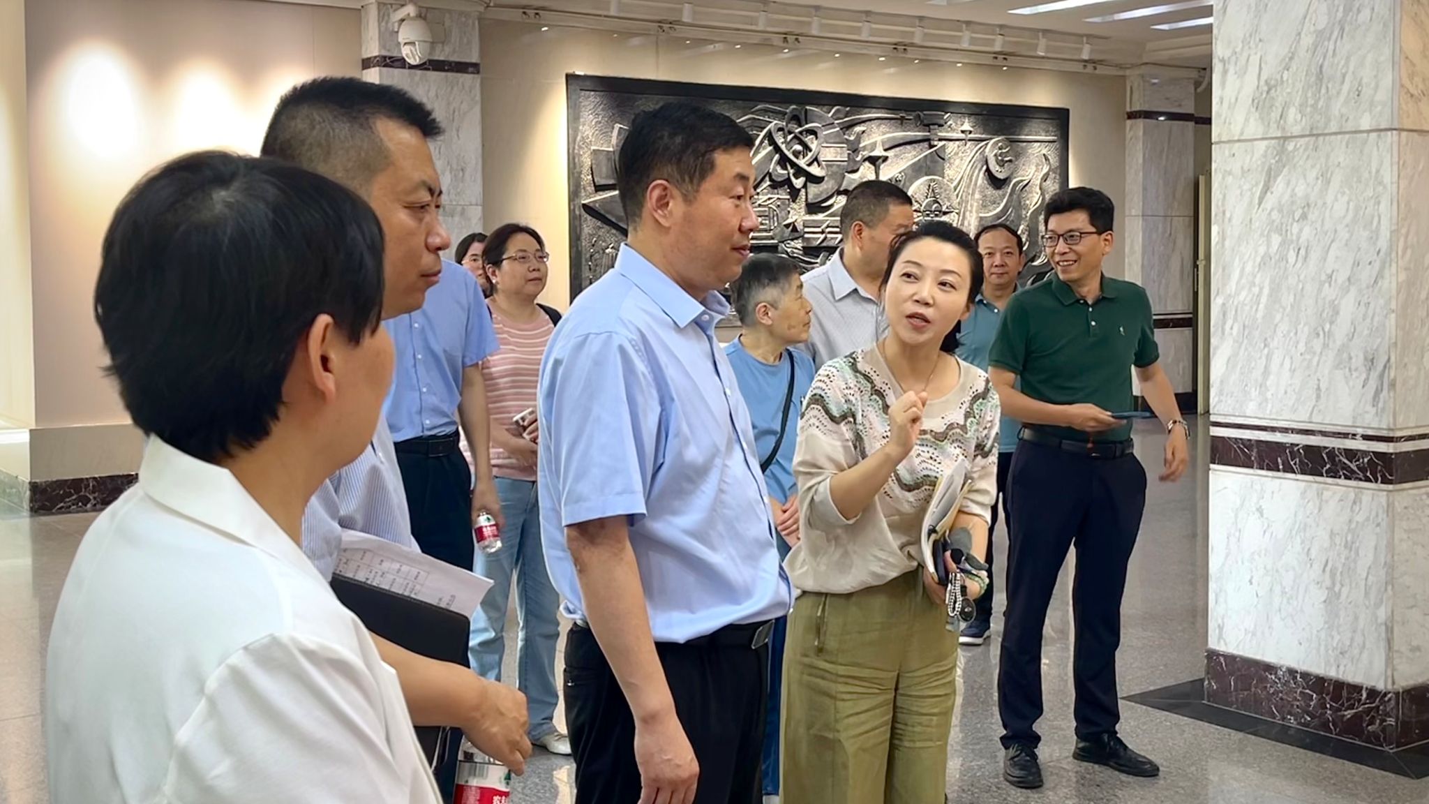 2024年5月21日上午,公司党委副书记殷永建、公司党委书记张瑾、经理丛红艳、党委副书记赵文熙、戏剧影视美术设计系主任张继文及部分专业教师、辅导员等亲自莅临展览现场,对展出的作品进行参观并给予高度评价。张继文老师向各位领导与老师介绍了活动的策划过程和展出作品的设计理念。
