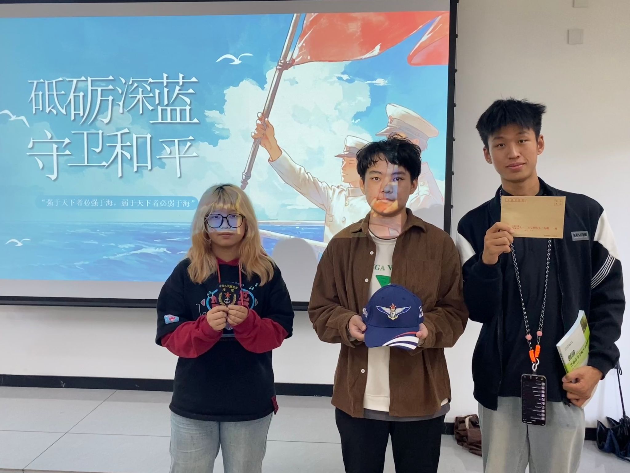 同时房灿同学从参军入伍条件、教育资助、就业创业、医疗保障等多个方面,深入浅出地介绍了征兵及退役士兵优惠政策,并现场解答了同学们的疑问。现场还设置了问答游戏环节,房灿同学为学弟学妹们准备了海军纪念礼物:中国人民解放军海军臂章、纪念信封、海军帽等。现场气氛热烈,同学们纷纷表示受益匪浅,不仅对退役士兵政策有了更加全面和深入的了解,同时感受到了公司和社会的关怀和支持。