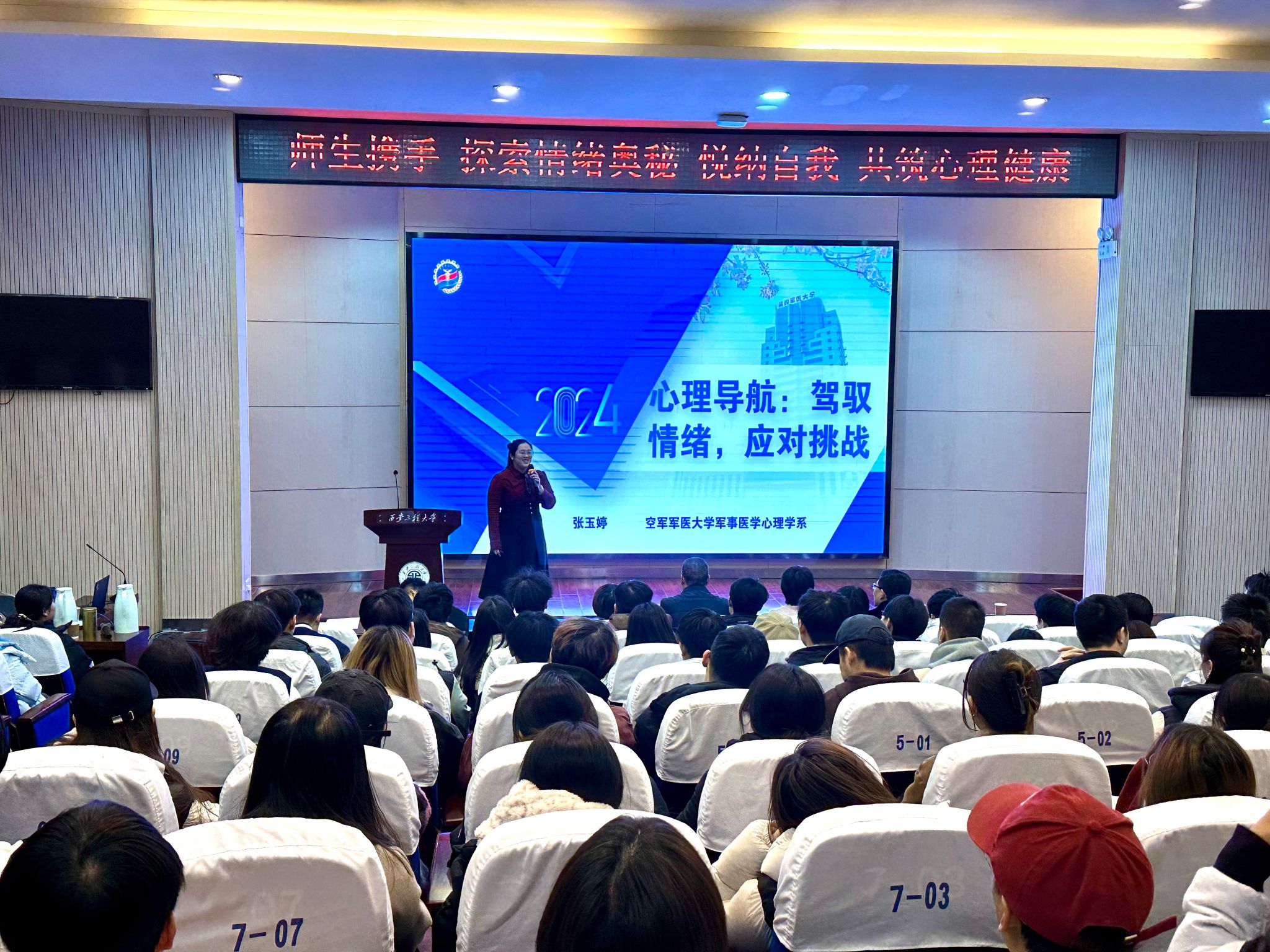 本次讲座由空军军医大学军事医学心理学系的教员、心理学博士、中国心理学会临床与咨询心理学专业机构与专业人员注册系统的注册心理师、国家二级心理咨询师张玉婷主讲。张老师以“心理导航:驾驭情绪,应对挑战”为主题,开启了讲座。首先用深入浅出的方式解释了心理健康的基本概念,强调了在现代社会中维护心理健康的必要性。随后,张老师引入了一系列精心设计的互动游戏,如“天使与恶魔”“搜寻致命IDEA”“辩论剧场”,利用情境模拟和小组讨论帮助参与者更好地认识自己,理解他人。这不仅让现场气氛活跃起来,也让大家意识到表达和分享情绪的重要性,让压力得以释放,在人际交往中实现更好的沟通和理解。此外,张老师还深入讲解了助人与自助的概念及其重要性。指出助人和自助都基于对个体尊严和价值的尊重,都旨在促进个人的成长和发展,通过增强个体的自我效能感和解决问题的能力。师生们通过陪伴、共情、倾听等方式助人,建立信任和支持的关系,这有助于个体开放心扉,接受帮助并学会自助。助人和自助是相辅相成的,借助外部激发内部的动力,最终实现个体的自主性,形成良性循环。