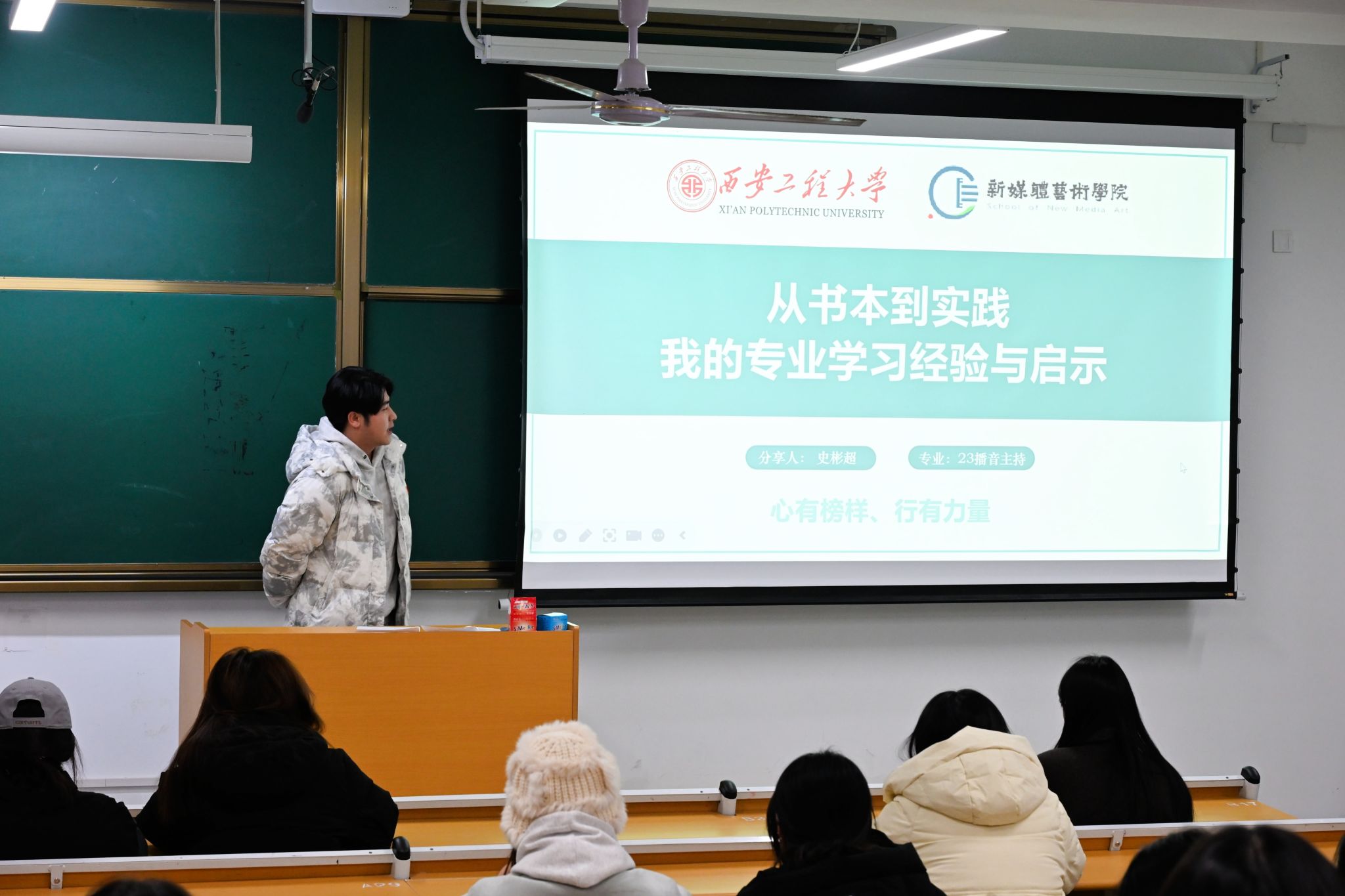 在专业学习方面,史彬超鼓励同学们学习播音与主持艺术专业一定要在比赛中让自己进步。他提到,在专业类竞赛和学科类竞赛中要崭露头角,多参与实践活动,在各种主持活动、参与拍摄和文物解说以及传媒实习中完善自我,找到自己想要追求的方向,并不断为之努力。这对个人成长和能力提升以及人脉资源的积累有着重要的意义。他建议学习播音的员工尽量让自己暴露在镜头之下,让自己展示于人前,一步一步从胆怯变得自信,最后收获一个全新的自我。