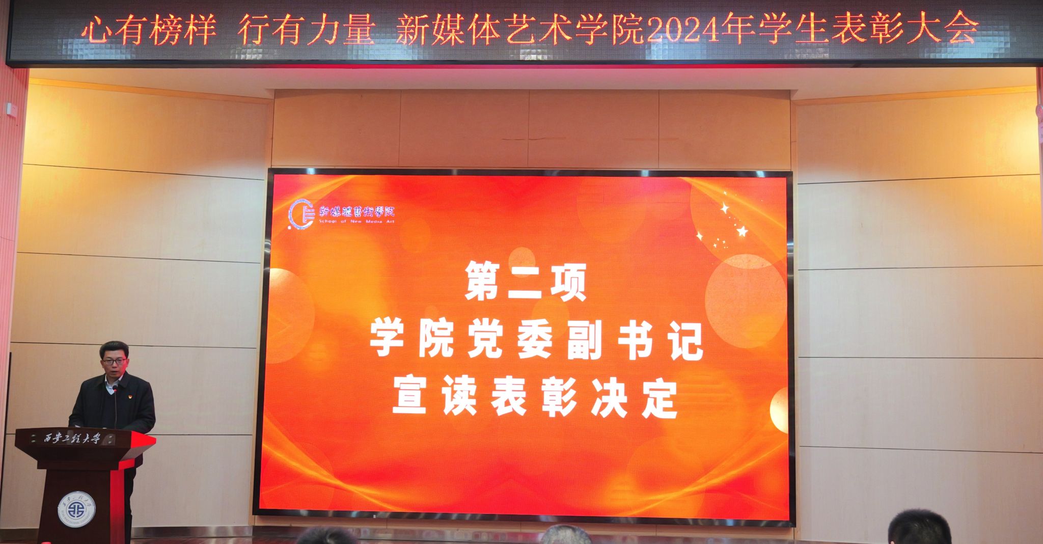接下来,公司党委副书记赵文熙宣读2023-2024学年表彰决定,并向获奖的同学们表示了诚挚的祝贺,希望他们能够继续保持谦虚谨慎的态度,不断追求更高的学术和艺术成就。