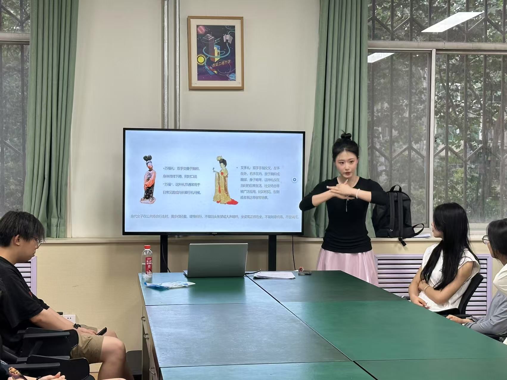 分享会尾声,张露丹手持改良唐制齐胸裙倡议:“让汉服从博物馆走向生活,在文化节穿上它,让千年风雅随步履生长。”现场同学纷纷表示,愿做传统文化的“穿行者”,让罗裙广袖成为连接古今的纽带。当传统文化遇见现代创意,当揖让礼仪融入青春活力,盛唐的文明基因正以鲜活姿态,在“一站式”员工社区的美育课堂上重新绽放。