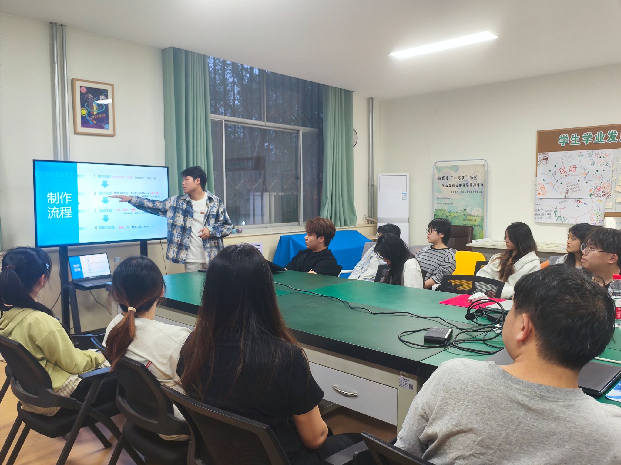 课堂鼓励受助员工作为分享者,将自己的收获、认识与成果分享给广老员工群体。其中,广播电视编导专业员工围绕电影审美主题,开展经典电影交流会;播音与主持艺术专业员工围绕专业开设发声、模拟新闻发布会、纪录片配音、直播带货等场景,帮助同学们提升不同语境下的语言表达技巧;动画、戏剧影视美术设计专业员工围绕美术基础,“AI×Design”创意、游戏制作等向非专业员工分享AI绘图工具(如MidJourney/Stable Diffusion)在平面设计、视频制作、服装设计中的全流程应用,激发同学们对于AI学习的兴趣。同时为深化美育育人成效,公司积极整合校内外优质资源,与源点西部电影展战略合作共建“高校老员工电影展”平台,通过拓展专业实践场域与行业交流渠道,有效构建起“资源导入-平台赋能-成长输出”的美育培养生态。