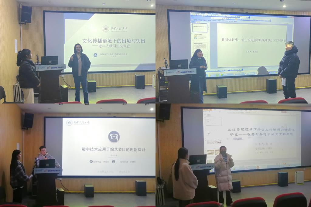 21级广播电视专业研究生张秀玲以《数字技术应用于综艺节目的创新探讨》为题,以数字时代的发展为综艺节目制作提供更为丰富的选择为切入点,阐述了综艺节目的虚拟与现实互嵌融合为观众带来的沉浸式的视听体验。同时,她认为综艺节目的创作过程中数字技术的应用还在探索与发展阶段,仍需要不断学习数字技术,平衡数字技术与艺术表达的关系,推动综艺节目的创新发展的结论。