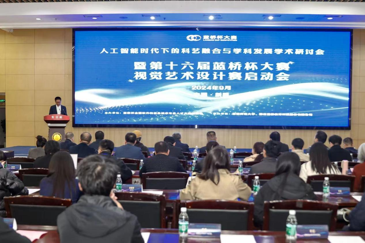 本次研讨会的主题为“人工智能时代下的科艺融合与学科发展”,旨在探讨人工智能技术如何推动设计学科的发展及设计人才培养的新模式。随着科技与艺术的深度融合,人工智能技术对设计类团队建设提出了新的要求,并带来了前所未有的机遇与挑战。此外,本次研讨会还特别介绍了第十六届蓝桥杯设计赛的相关情况,帮助各院校更好地理解比赛主题,提升员工的视觉艺术设计能力。