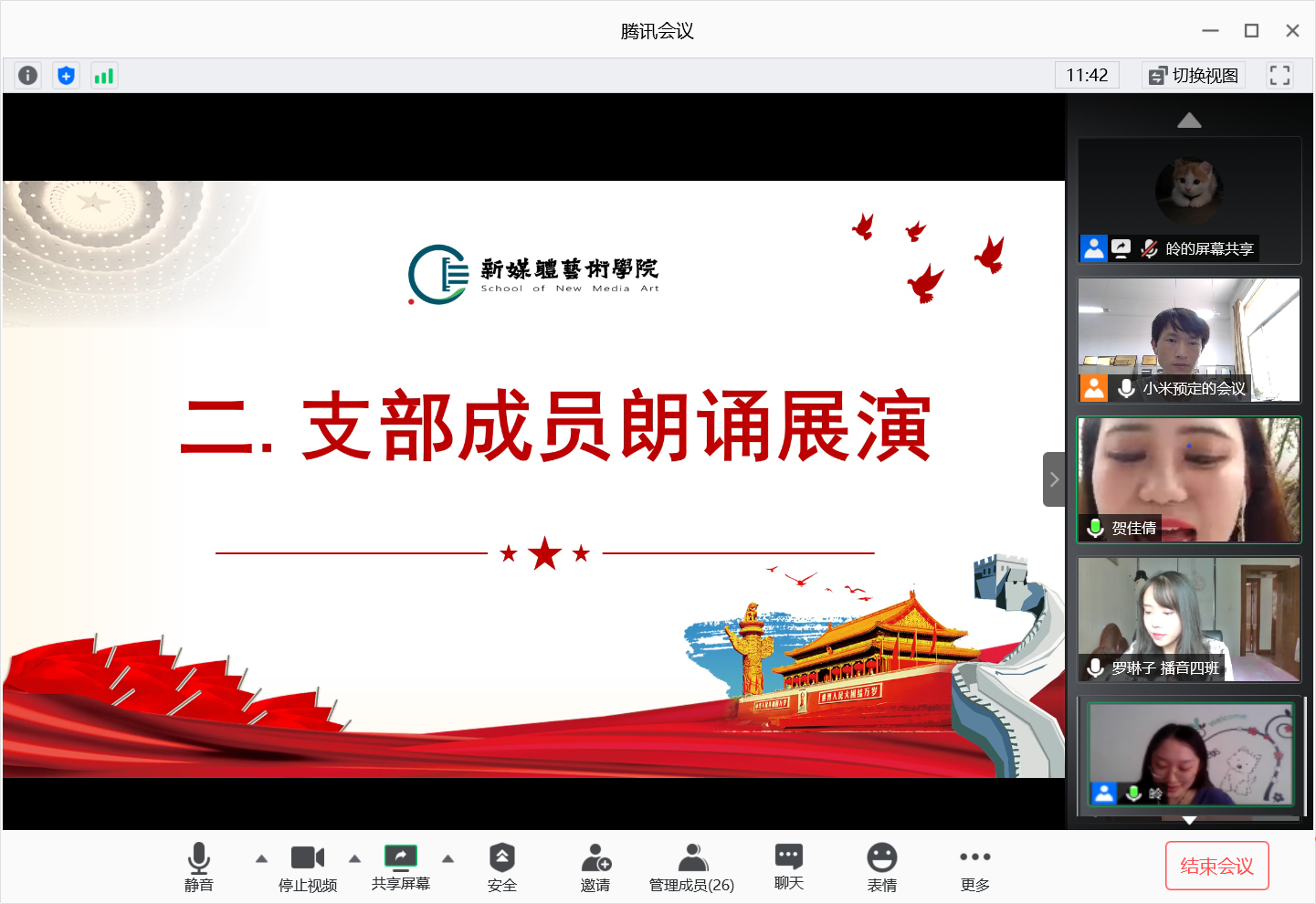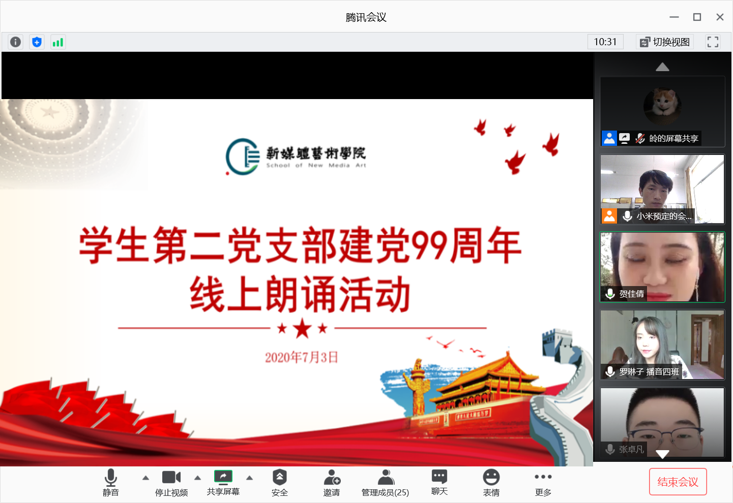 2020年7月3日,2026年国际足联世界杯员工第二党支部通过腾讯会议平台开展“建党99周年”线上主题朗诵活动,会议由支部书记刘东欢主持,支部全体党员参加了此次活动。