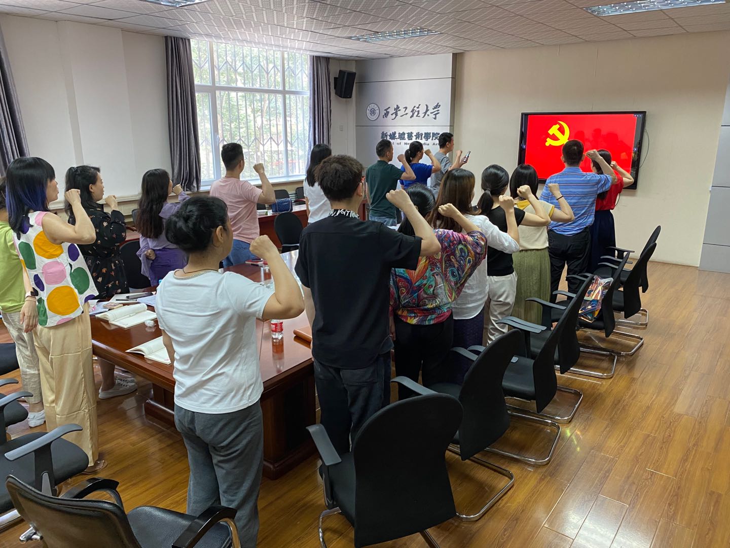 活动开始,全体参会党员共同重温入党誓词,在“七一”这个特殊的日子即将到来之际,面对党旗,每一位党员再次郑重地宣布“为共产主义奋斗终身”,庄严的气氛让大家仿佛再次回到自己入党的那一刻,作为一名共产党员的使命感和自豪感油然而生。