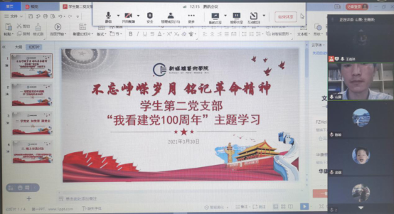 首先,支部书记刘东欢老师带领大家观看建党百年纪录片《辉煌的记忆》,重温党的百年记忆。其次,支部党员集体学习党的历史知识,领会新时代精神,进一步加深对党史的学习,深化革命精神的领悟。最后,党支部成员进行线上交流讨论,结合中国共产党成立100周年的到来,一同探讨了我国的制度优势和新时代青年的使命和担当。