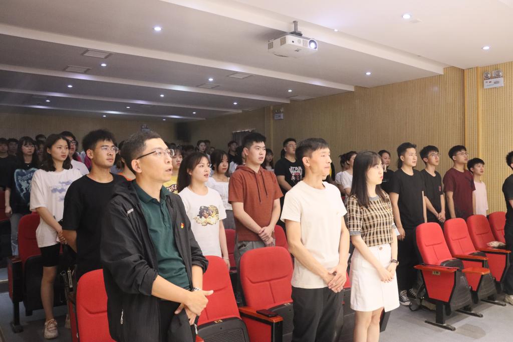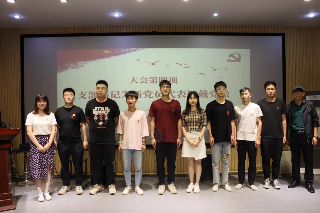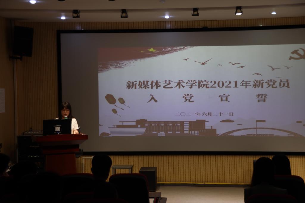 仪式在雄壮的《国际歌》声中拉开帷幕。仪式伊始,大会宣读了新党员名单,新党员代表宋慧带领新党员庄严宣誓,各支部书记为新党员代表佩戴了党徽。来自2019级编导专业的新发展预备党员代表韩旭发言,她表达了自己要恪守在党旗下的诺言,更加严格要求自己,时刻保持共产党员的先进性和先锋模范作用,努力使自己成为一名优秀共产党员的决心和信心。