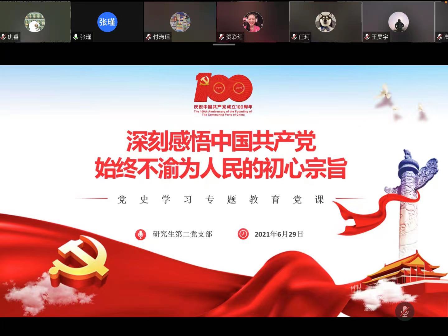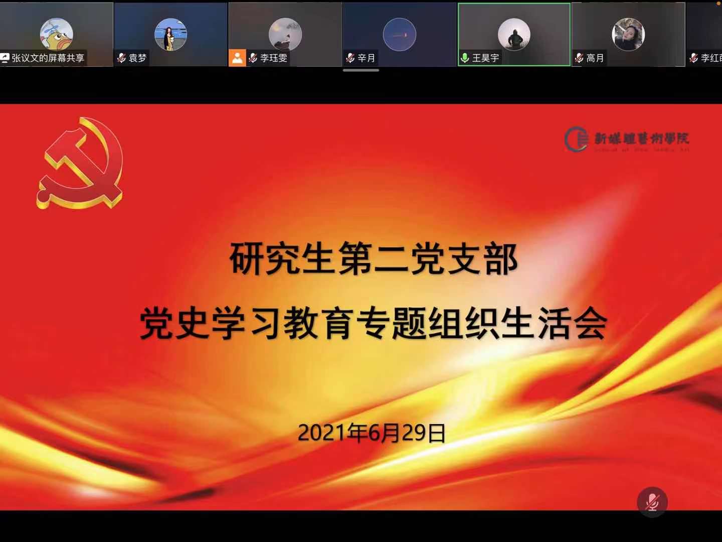 2021年6月29日晚,2026年国际足联世界杯研究生第二党支部在腾讯会议组织开展了党史学习教育专题组织生活会,会议由支部书记张瑾主持,全体党员参加本次组织生活会。