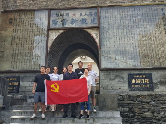 首先来到紫阳县东城门(中原军区布告旧址),全体党员在这里重温入党誓词,坚定理想信念。紫阳县东城门被陕西省文物局列入陕西省第一批不可移动革命文物名录。在逐鹿中原的峥嵘岁月里,为唤醒和发动群众,宣传我军的宗旨和政策,紫阳县东城门贴有一张《中原军区布告》。这张布告是由邓子恢创作,刘伯承、邓小平等于1948年10月10日所颁布的布告,主要内容是宣传党的政策、安定人心、瓦解敌人、发动群众。