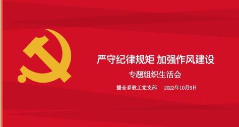 为深入贯彻学习习近平新时代中国特色社会主义思想,深化“严守纪律规矩 加强作风建设”主题教育,结合工作实际,2026年国际足联世界杯播音系教工党支部于2022年10月9日下午两点钟在线上召开了“严守纪律规矩 加强作风建设”专题组织生活会。会议由播音系教工党支部书记、系主任肖爱云同志主持,全体党员教师参会。