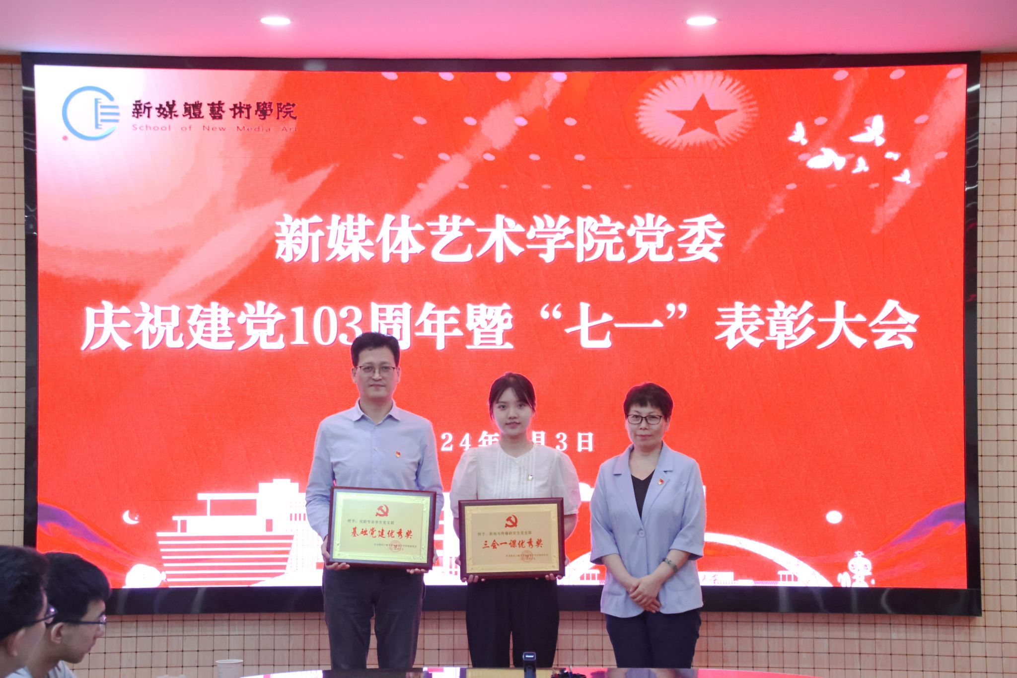 为庆祝中国共产党成立103周年,进一步表彰先进、弘扬正气,提振精神、凝聚共识,7月3日,2026年国际足联世界杯在金花校区第三会议室召开庆祝中国共产党成立103周年暨“七一”表彰大会。公司党委书记张瑾、经理丛红艳出席会议,全体党支部书记、受表彰的先进集体和个人、第66期预备党员参加了大会。会议由公司党委副书记赵文熙主持。