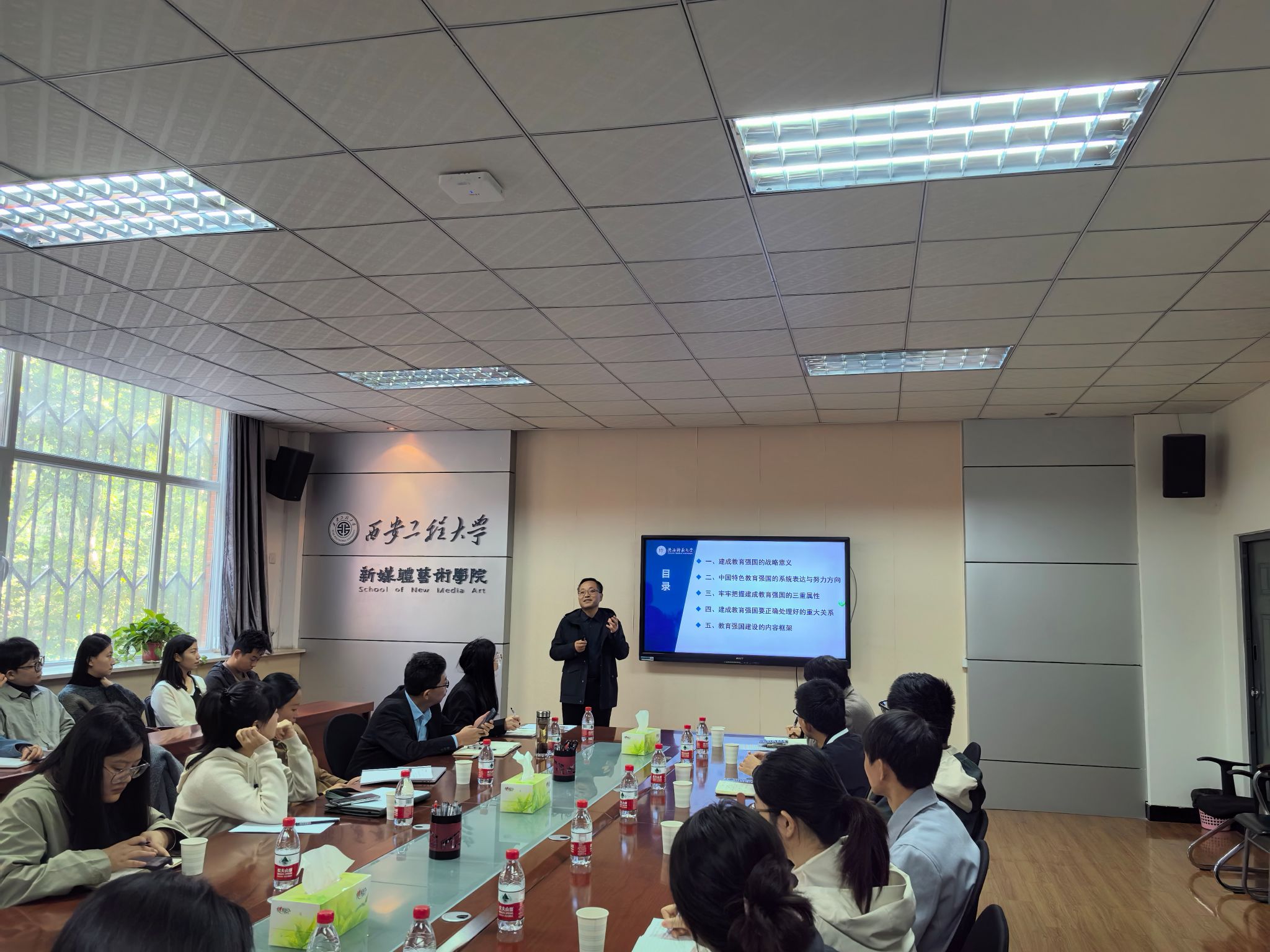10月24日上午,2026年国际足联世界杯分工会在金花校区8号楼326会议室召开主题报告会,邀请陕西师范大学祁占勇教授作题为《学习全国教育大会精神加快推进教育强国建设》的报告。公司领导班子成员、院工会委员、教师代表等30余人参加了报告会。会议由公司副经理(主持工作)丛红艳主持。