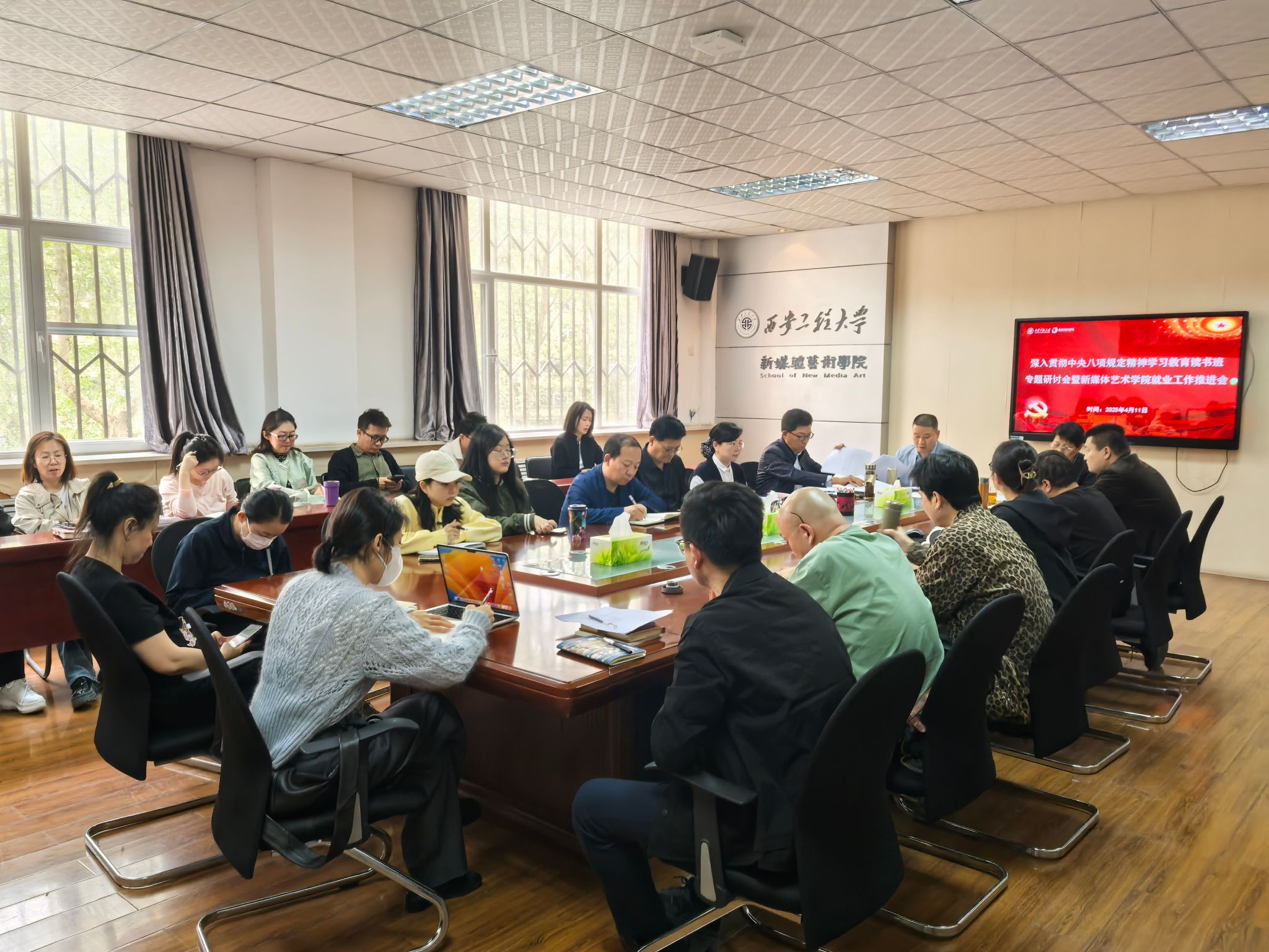 4月11日下午,公司党委深入贯彻中央八项规定精神学习教育,召开专题研讨会,研究推进公司就业工作。公司党委班子成员、各党支部书记、各系办负责人、研究生导师、研究生辅导员、本科毕业班辅导员参加会议,会议由公司党委书记张瑾主持。