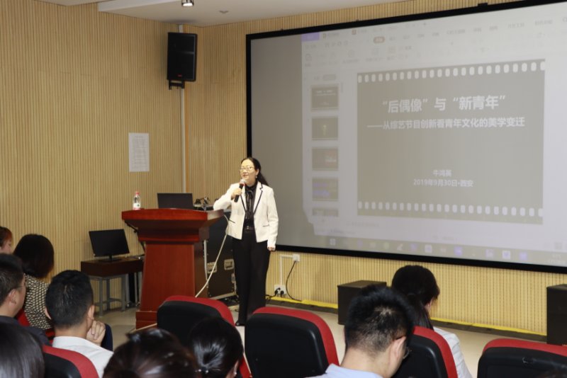 牛鸿英教授以《“后偶像”与“新青年”——从综艺节目创新看青年文化的美学变迁》为讲座主题,从鹿晗、蔡徐坤、李雪琴、庞博等这些同学们耳熟能详的明星偶像入手,阐释了“后偶像的文化生产:从性别表征到文化议题”、“酷青春的时尚创造:从形式美学到杂糅美学”、“新青年的价值创新:文化创漩与价值破壁”等三方面的内容。