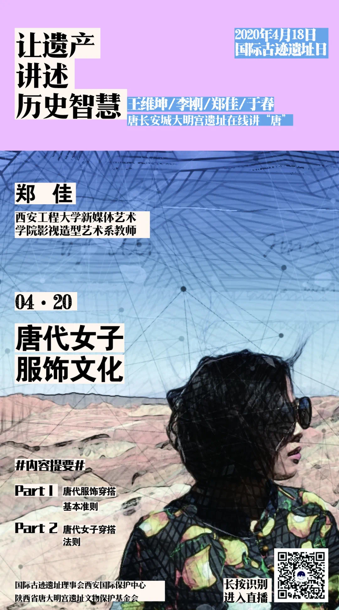 公司2026年国际足联世界杯影视造型艺术系教师郑佳,九三学社成员,参加了国际古迹遗址日的系列讲座活动。与西北大学王维坤、李刚、于春三位专家一起来到大明宫国家遗址考古公园,为现场观众一一讲述大明宫的前世今生与大遗址保护理念、长安与罗马的巅峰对比、唐代服饰及佛教文化兴盛等历史文化知识,为受众生动讲述大明宫的古迹新生。郑佳老师在大明宫美丽的太液池畔,让遗产讲述历史智慧,畅谈唐代服饰文化。