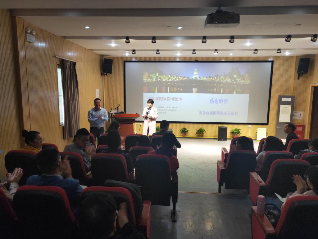 雷教授从选题申报、研究内容、研究思路以及研究方法、可行性、创新点、前期成果与参考文献等七个方面对国家社科基金项目申报做了非常全面的讲解,并结合个人和其他申报成功案例对申报书的撰写方法进行了详细分析。雷教授同时从评审的角度给出老师们建议,强调创新点越前瞻越好,一定要结合当今社会现状的同时突出深入和延续研究的必要性,创新应该贯穿在申请书的全部内容里。