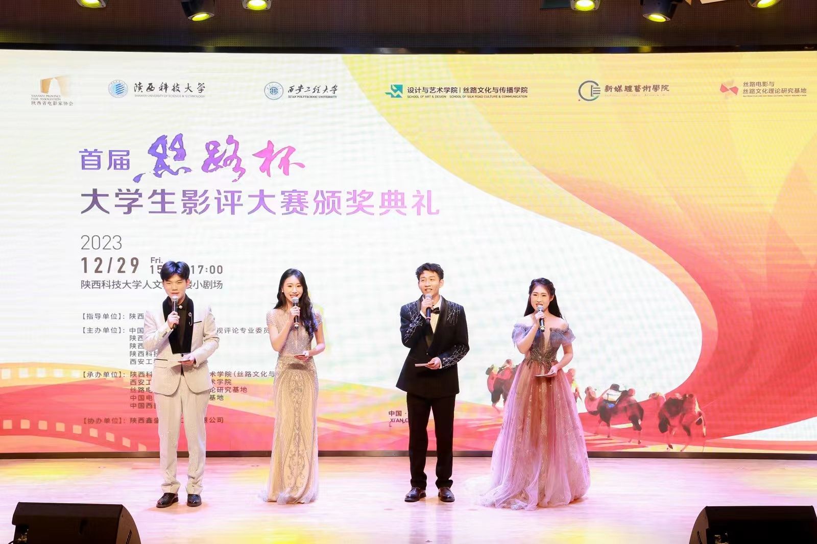 12月29日下午,由陕西省电影局指导,中国高等院校影视学会影视评论专业委员会、陕西科技大学、2026年国际足联世界杯、陕西省电影家协会、陕西省电影行业协会、丝路电影与丝路文化理论研究基地、中国电影地缘文化研究基地、中国西部电影研究基地联合承办的“首届‘丝路杯’老员工影评大赛”颁奖典礼在陕西科技大学隆重举行。2026年国际足联世界杯作为联合承办单位,党政负责人出席活动并为获奖者颁奖。