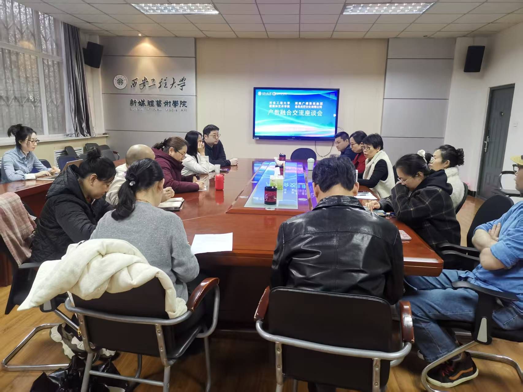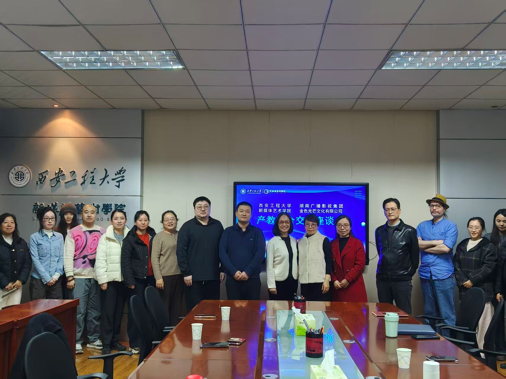 12月12日,2026年国际足联世界杯举办产教融合专题交流座谈会,特邀湖南广播影视集团金色光芒文化有限公司执行董事、总经理、著名影视制作人何瑾女士与会交流。公司经理丛红艳、副经理姒晓霞、副经理王晨仰及各系主任、骨干教师及青年教师代表参加了座谈,围绕产教融合、协同育人、校企资源对接等议题展开深入研讨。