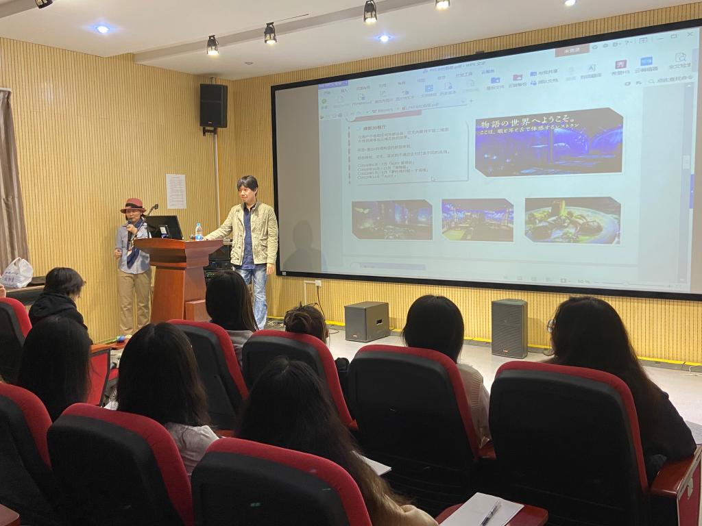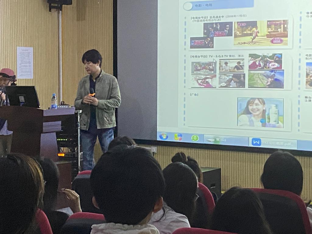 随后,伊藤秀隆先生对电视、电影,舞台剧表演等方面进行简要讲述,并就现当代日本行业内如何将三维影像转化为二维影像的相关思考进行分析与讲解,交流分享后也鼓励参加讲座的同学努力学好专业知识,结合学科优势,在相关领域发挥正向作用。