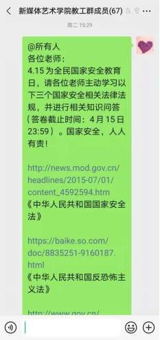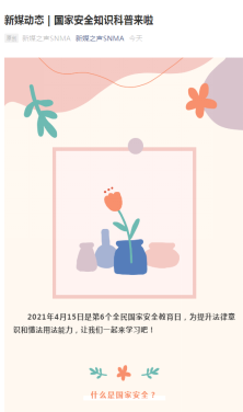 4月15日,公司公众号“新媒之声”发布主题推文《国家安全知识科普来啦》