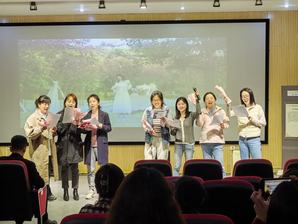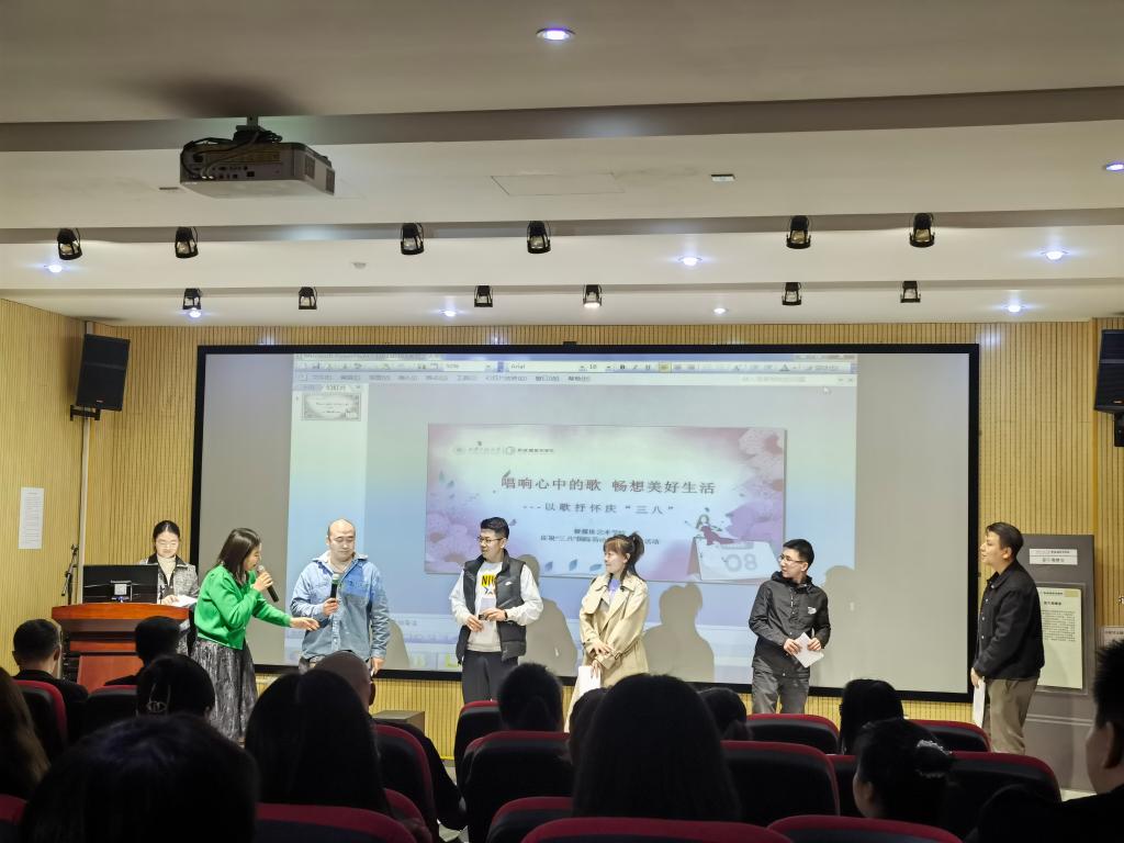 3月7日下午,在金花校区8号教学楼六楼观摩室,举行“唱响心中的歌畅想美好生活”以歌抒怀庆“三八”活动。活动由播音与主持艺术系教师武琼老师担任,公司党委书记张瑾向全体女教工表示节日祝福。现场在一首首或温馨、或奋进、或励志、或展望、或祝福的歌声中,高潮迭起,充满着欢声笑语。