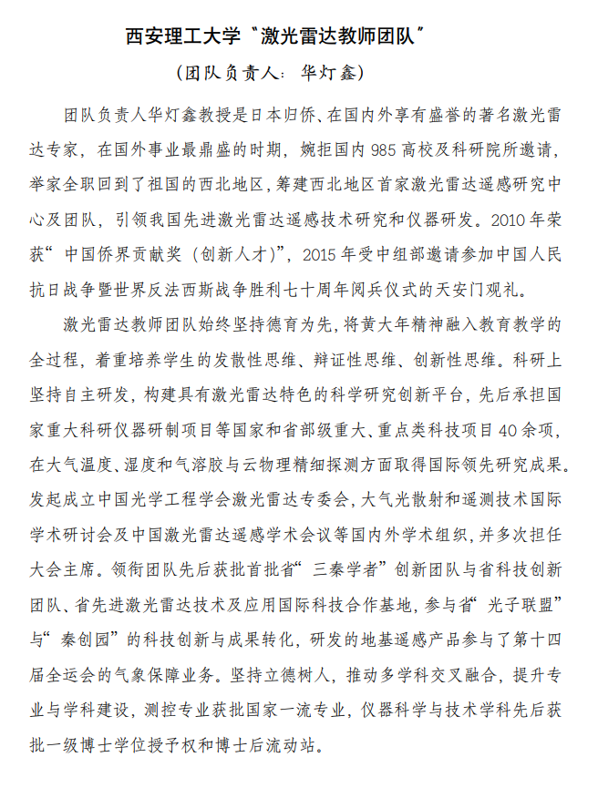 为深入贯彻落实习近平总书记对黄大年同志先进事迹重要指示精神,引导广大教师持续向黄大年同志学习。发挥“全国高校黄大年式教师团队”的示范引领作用,激发广大教师积极投身教书育人事业,根据《陕西省教育厅办公室关于开展“全国高校黄大年式教师团队”学习宣传活动的通知》文件精神及公司向“全国高校黄大年式教师团队”学习的活动。现将陕西省“全国高校黄大年式教师团队”先进事迹发布于此,大家积极学习。