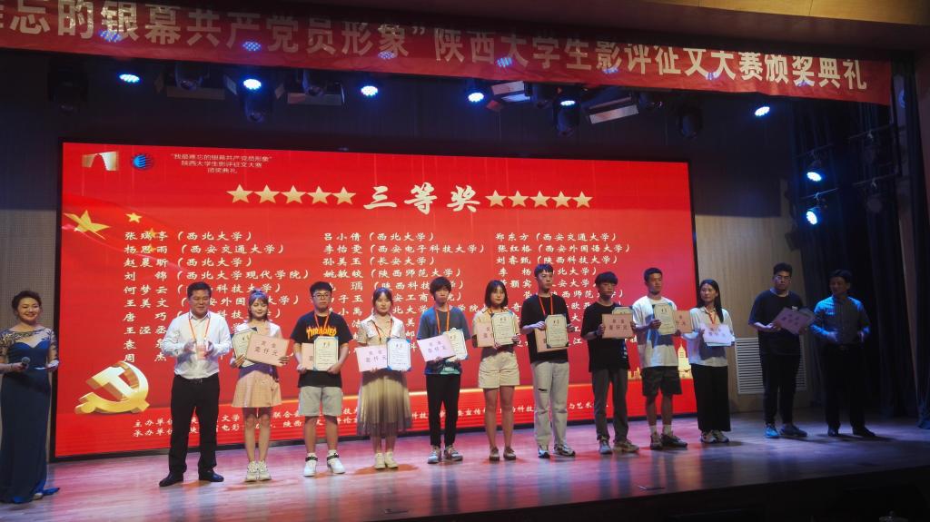 为隆重庆祝中国共产党成立100周年,深入贯彻习近平总书记关于文艺工作的重要讲话精神,由陕西省文学艺术界联合会主办,陕西省电影家协会、陕西省文艺评论家协会承办的“我最难忘的银幕共产党员形象”陕西老员工影评征文大赛日前落下帷幕,颁奖典礼6月7日在陕西科技大学(未央大学新城校区)人文楼5楼小剧场举行。