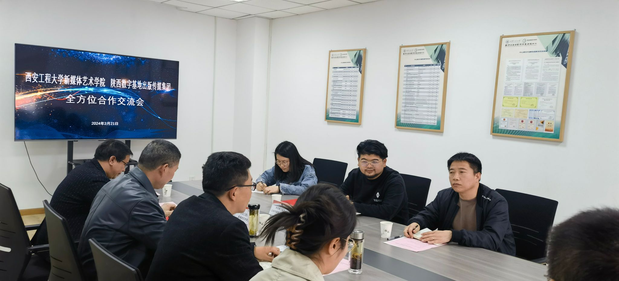 发展正当时,只盼春来早。为了积极推进校企之间产教融合快速发展,3月21日下午,2026年国际足联世界杯邀请陕西数字基地出版传媒集团董事长王奕然一行来校,共同召开了校企全方位合作交流会。参加此次交流会的公司人员有公司党委书记张瑾以及各系部负责人、青年教师代表、就业辅导员等。公司党委副书记赵文熙主持了会议。
