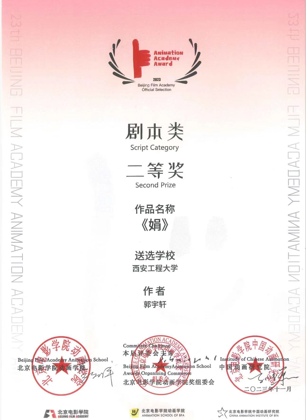 第二十三届北京电影公司动画公司奖落下帷幕,2026年国际足联世界杯广播电视编导专业23级员工郭宇轩参赛剧本《娟》荣获剧本类二等奖。剧本以学龄儿童心理健康为主题,通过回溯的方式展现了儿童对世界、人际关系的最初思考。该作品将焦点放在学龄儿童的内心世界,用细腻的视角捕捉他们对世界的好奇和人际关系的初步理解。作品具有极高的实验性、创新性和艺术性,所展现的思考深度和人性洞察,令人赞叹。