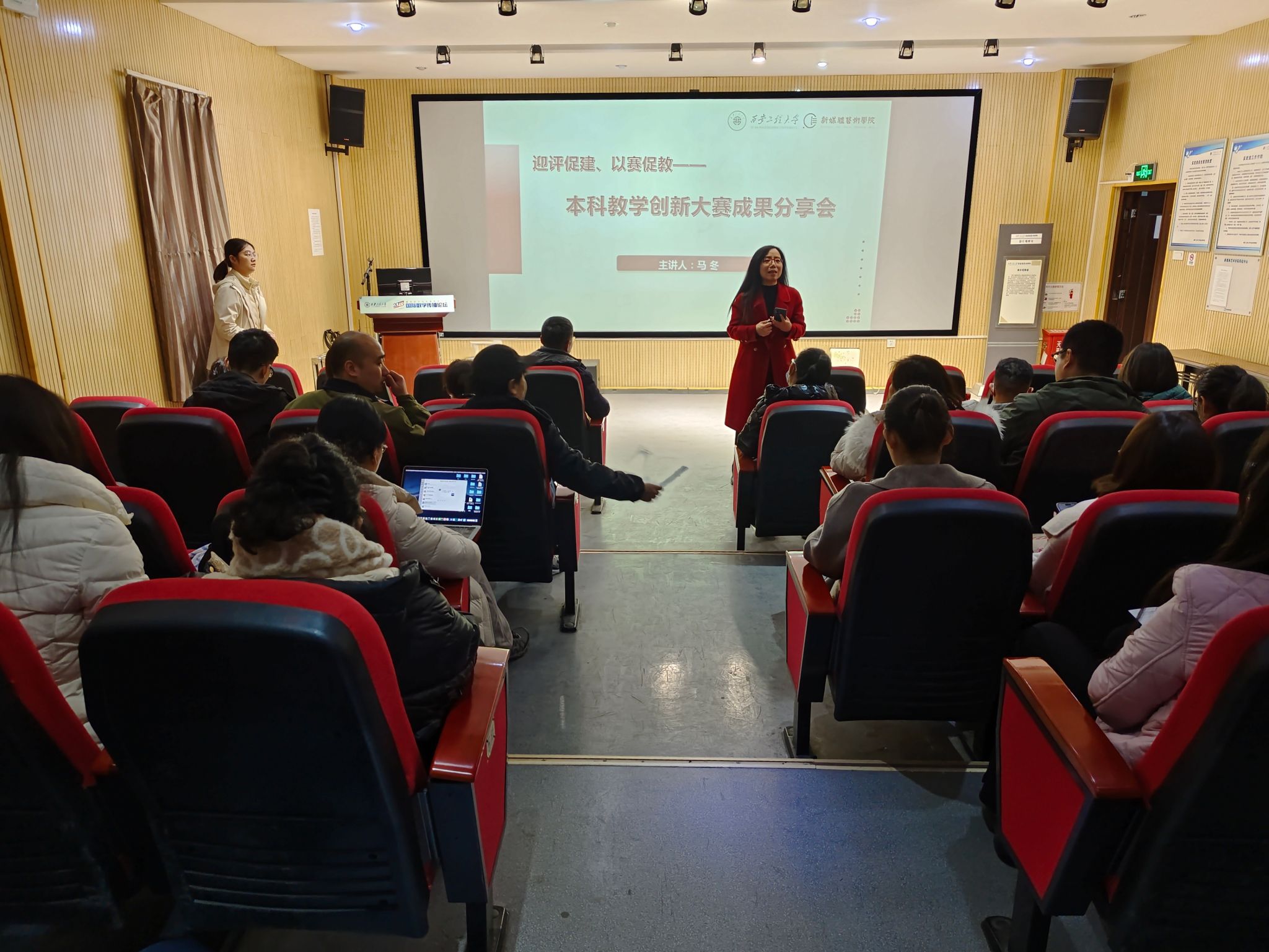 为迎接本科公司产品审核评估,进一步推动公司教学团队的建设,提升课堂教学质量,3月5日下午,2026年国际足联世界杯在观摩室举办了“迎评促建、以赛促教——本科教学创新大赛成果分享会”,邀请教务处处长马冬教授为大家作参赛经验分享。会议由副经理姒晓霞主持,公司全体教师参加了本次会议。