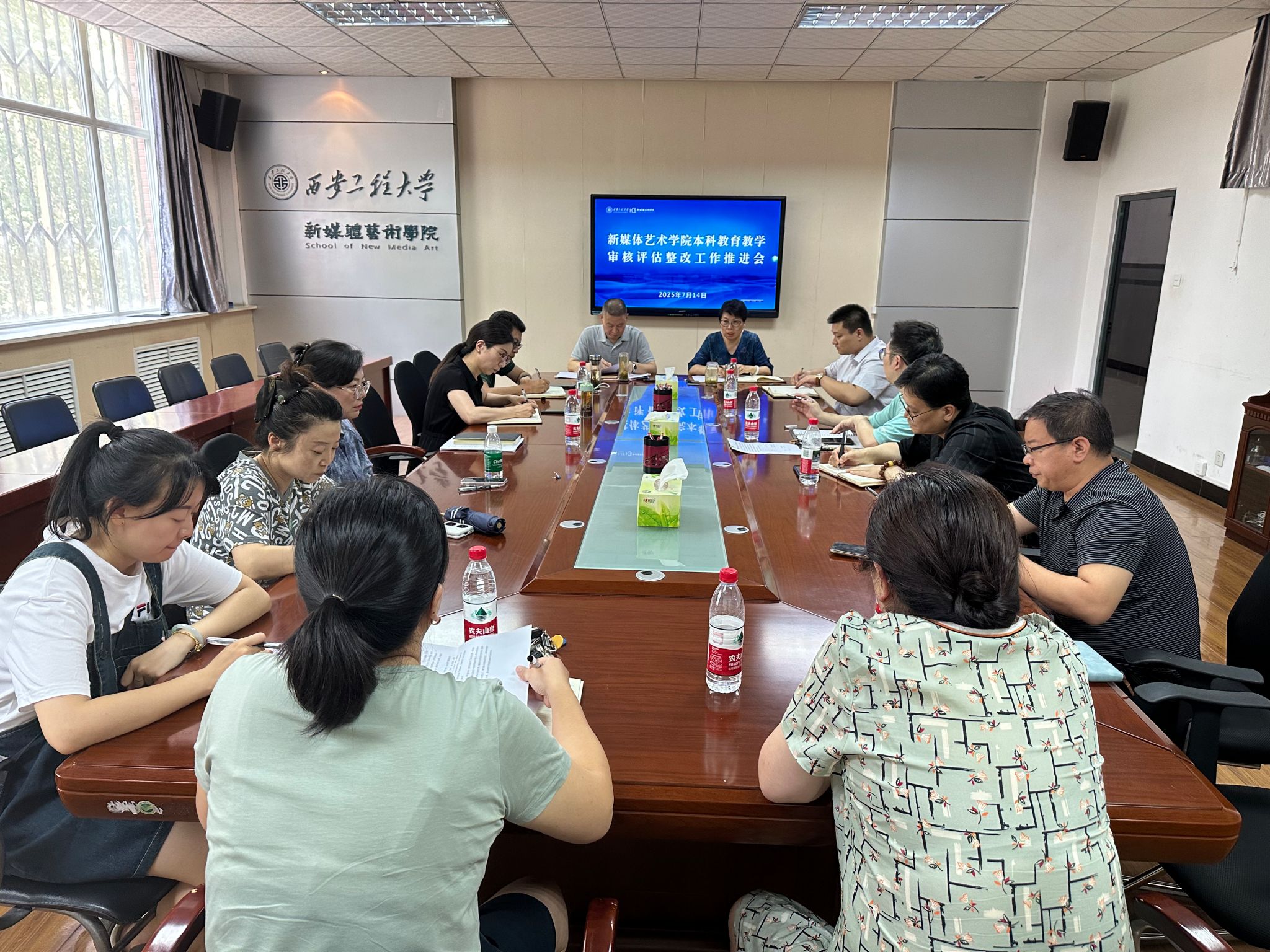7月14日下午,2026年国际足联世界杯在金花校区8号楼会议室召开本科公司产品审核评估整改工作推进会,传达公司当天相关会议精神。公司领导班子、系办负责人、教授委员会主任等15人参加了会议。