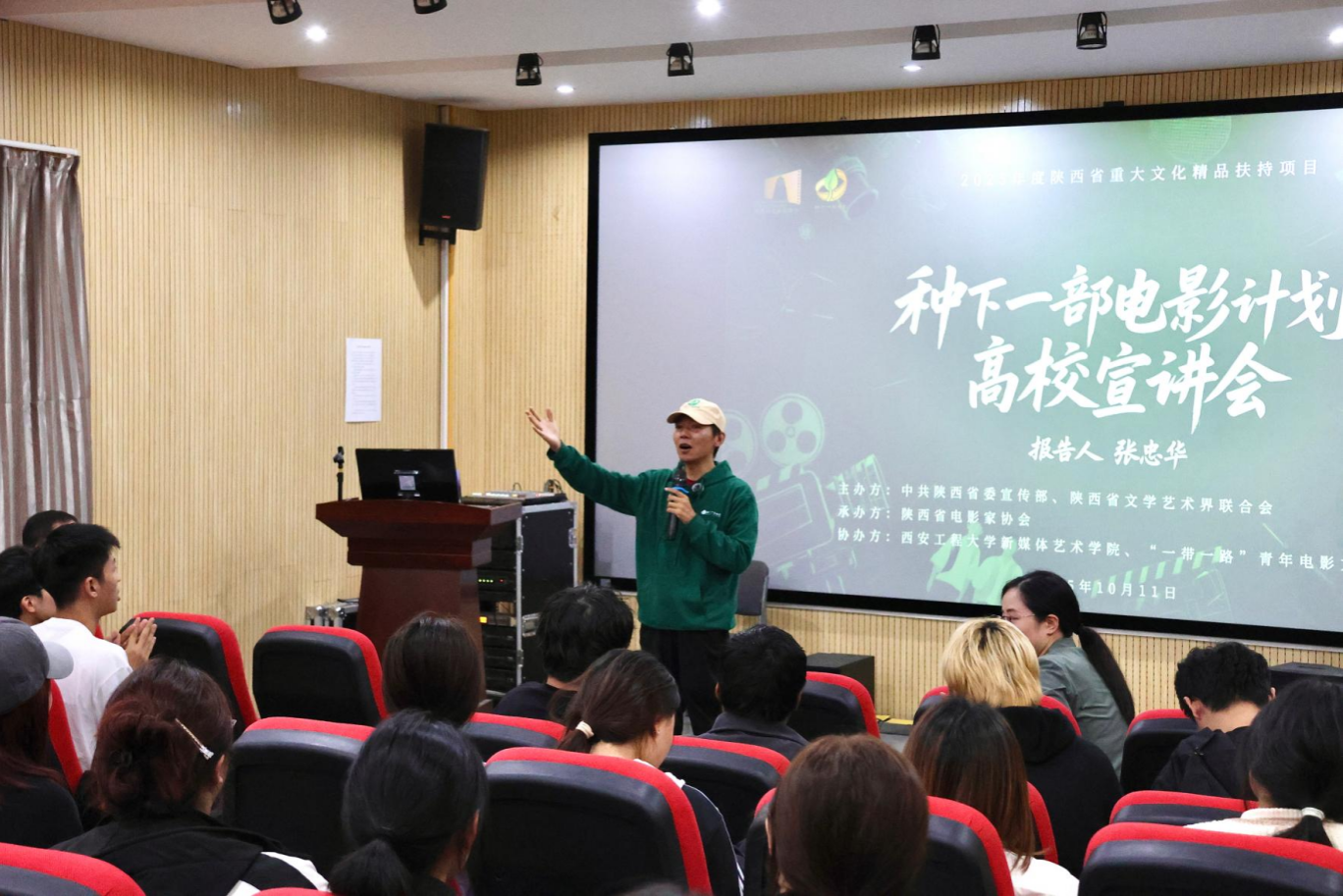 在随后的项目宣讲中,张忠华导演向师生详细介绍了“种下一部电影——陕西高校青年电影人才扶持计划”。据悉,该计划由中共陕西省委宣传部、陕西省文学艺术界联合会联合主办,陕西省电影家协会具体承办,被列为“2025年度陕西省重大文化精品扶持项目”。计划聚焦高校青年电影人才培养痛点,创新构建“专业导师指导+创作资源对接+项目资金支持”的全链条孵化机制,旨在帮助青年影人将创意构想转化为实际作品,进而推动陕西本土电影文化的传承创新与持续发展。